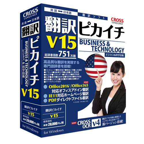 翻訳ピカイチ V15 for Windows (4947398115625) 28,000円(税抜)