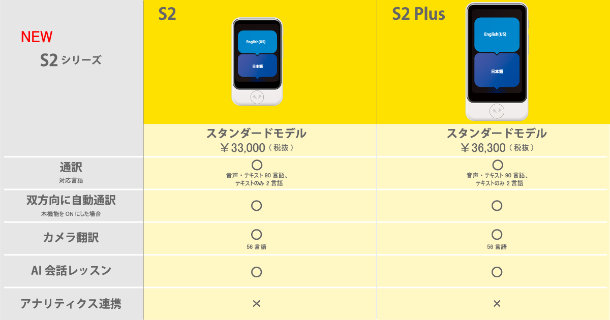 ポケトークS2 は、ポケトークSとどんな違いがありますか?
