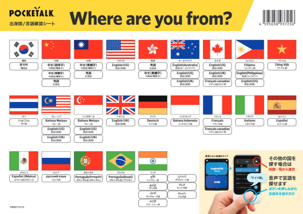 ポケトークは、音声・テキスト91言語/テキストのみ1言語で翻訳します。