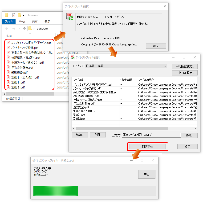 ビジネス~科学技術の広範な分野を網羅した専門語辞書や詳細な登録が可能なユーザー辞書はもちろん、これまで翻訳した原文と訳文のセット(対訳文)を活用することで以降の翻訳を大幅に効率化する「翻訳メモリ」機能を搭載。